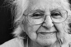 After a long pause, the door opened. A small woman in her 90’s stood before me. She was wearing a print dress and a pillbox hat with a veil pinned on it, like somebody out of a 1940’s movie.
